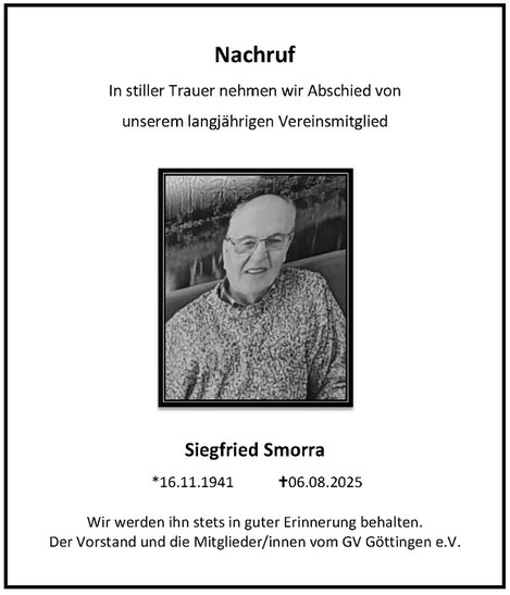 Siegfried Smorra aus Göttingen wird am 16. November 84 Jahre alt.