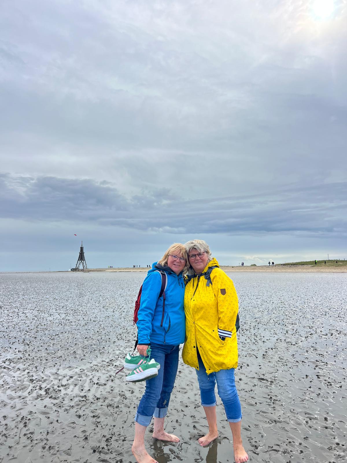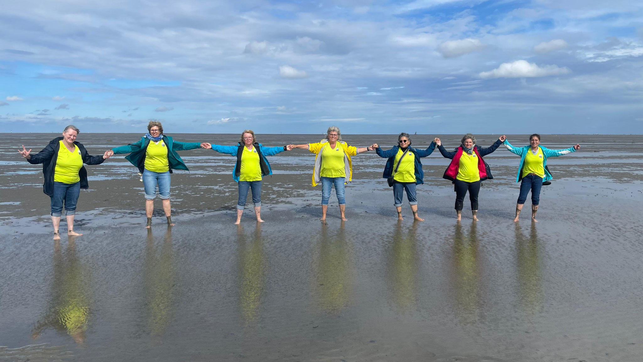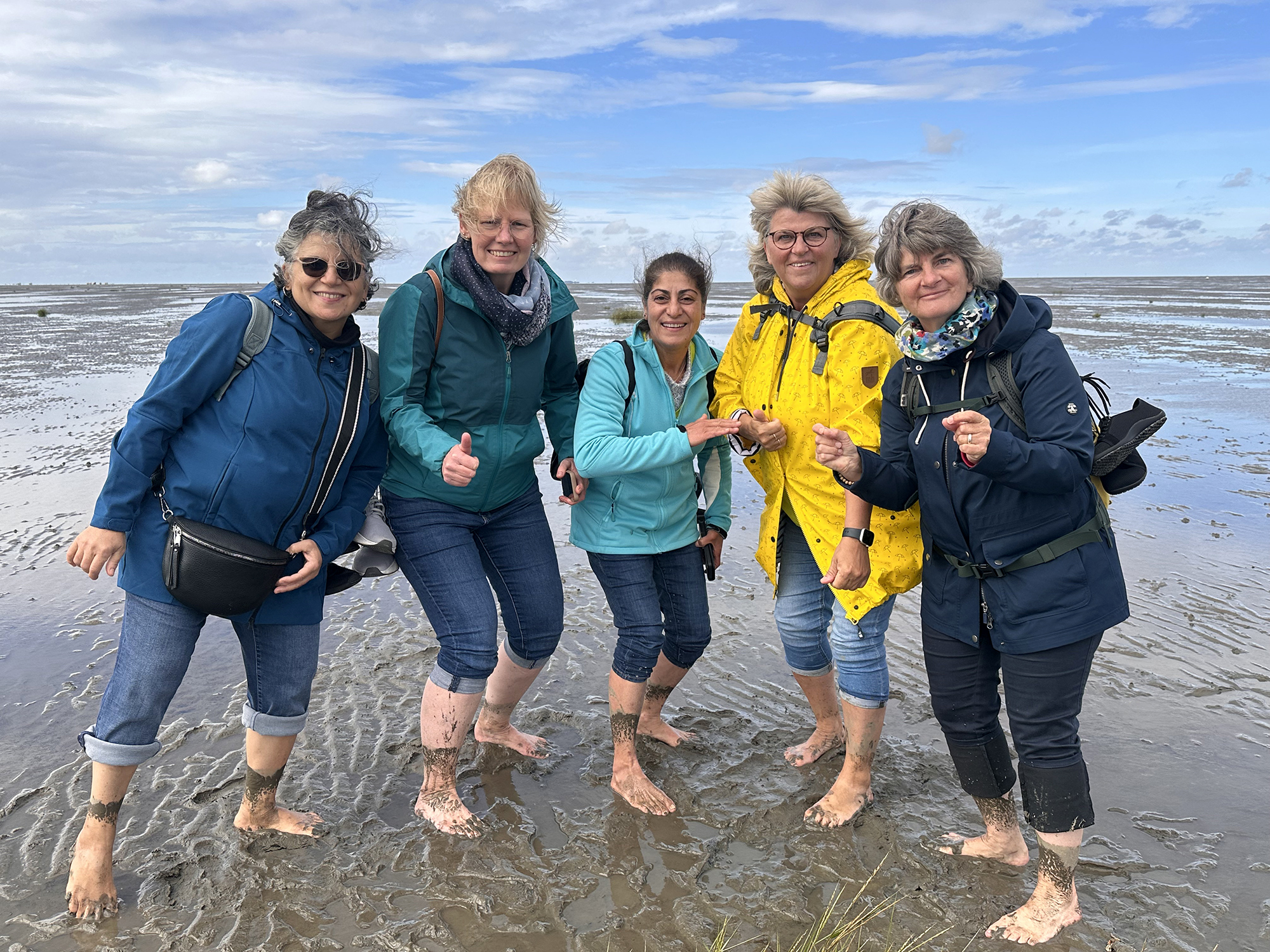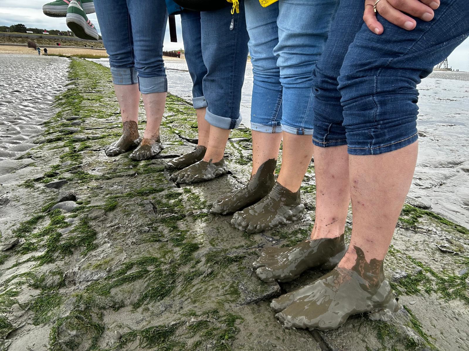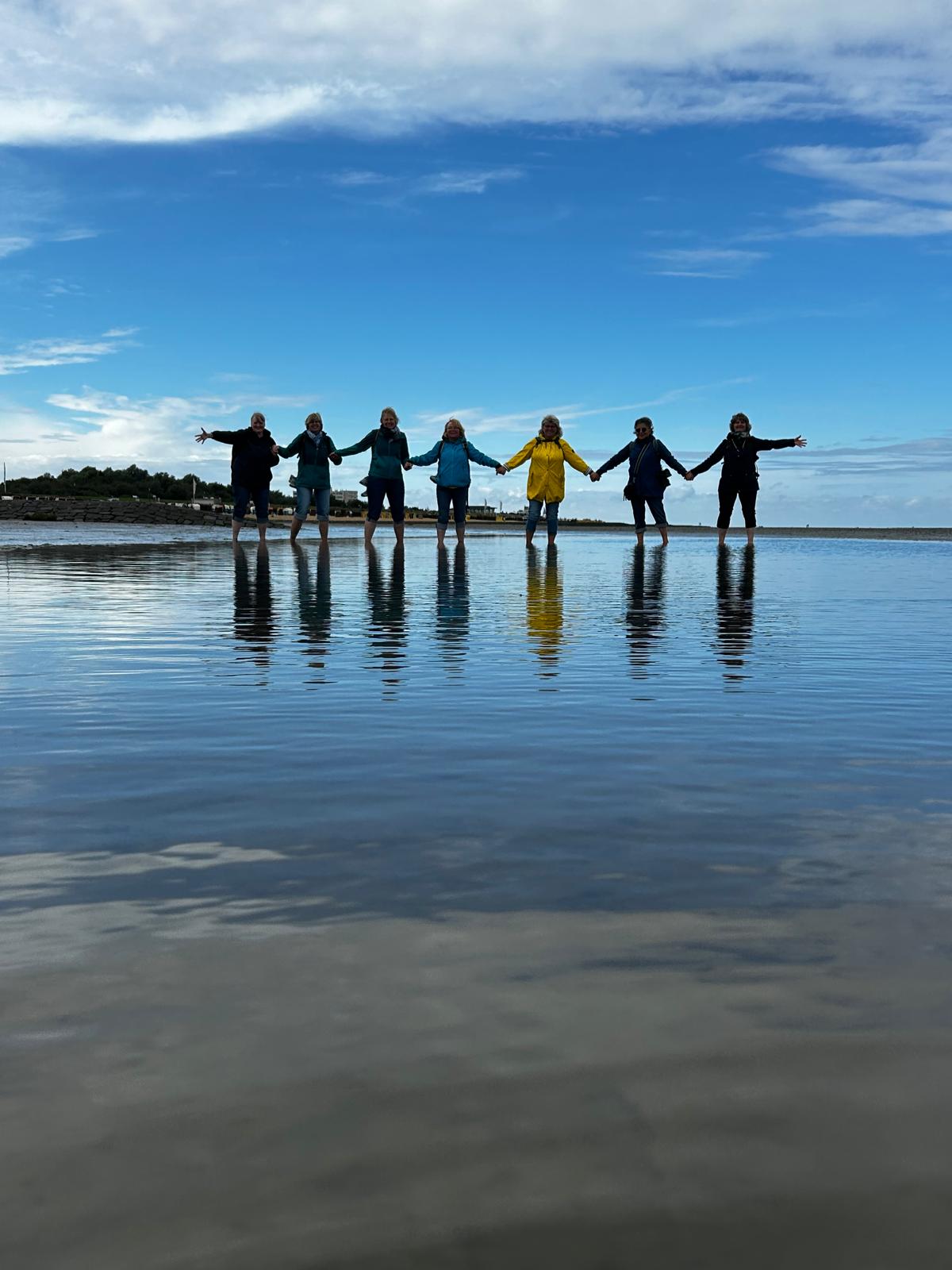 Anschließend teilte sich die Gruppe auf. Da Ebbe war, gingen 6 Frauen zu Fuß, mit hochgekrempelten Hosenbeinen und nackten Füßen, durch das Wattenmeer. Alle hatten sichtlich viel Spaß dabei.