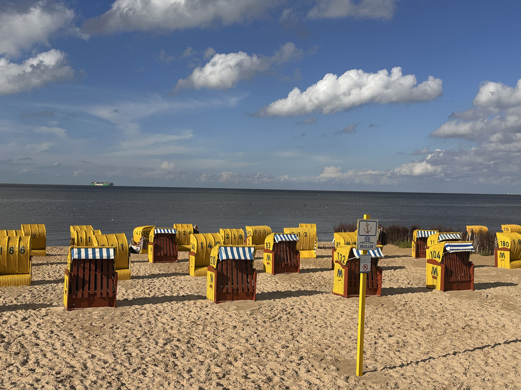 Wie kam es zu dem ungewöhnlichen Namen? 1733 wurden als Bollwerk gegen die Fluten alte Schiffe mit Felsen verfüllt und zugeschüttet. Das vorderste Schiff hieß „Die Liebe“ – daraus ist dann der Name „Alte Liebe“ entstanden. Nach und nach wurde das Bauwerk erweitert, verstärkt und mehrfach erneuert. Heute dient die „Alte Liebe“ ausschließlich als Aussichtsplattform. Die Aussicht auf das Wasser und vorbeifahrenden Frachter/Schiffe haben wir genossen.