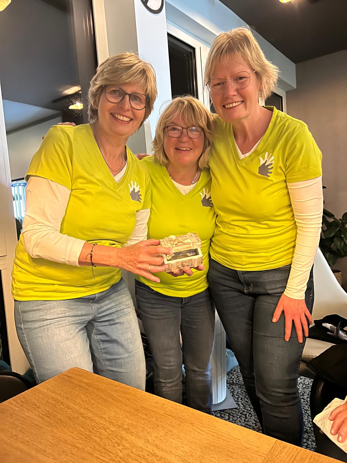Es gab noch eine weitere Ehrung - Susanne Gleitze wurde, zu Ihrer Überraschung, für 25 Jahre als Kassenwartin des Frauentreffs geehrt. Sie bekam von Petra und Annette ein Geschenk als Dankeschön für die immer ordentlich und gewissenhaft geführte Kasse überreicht.