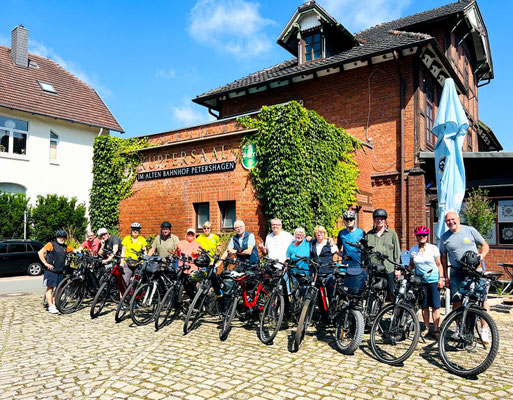 Die Tour war rundum schön – abwechslungsreich, entspannt und von guter Stimmung begleitet. Unterwegs wurden immer wieder Pausen eingelegt, um die Landschaft zu genießen, schöne Fotos zu machen und miteinander ins Plaudern zu kommen. Zum Abschluss kehrten alle in ein schönes Kupfersaal Restaurant ein – ein liebevoll umgebauter, ehemaliger Bahnhof. Dort war ein Tisch für die Gruppe reserviert.