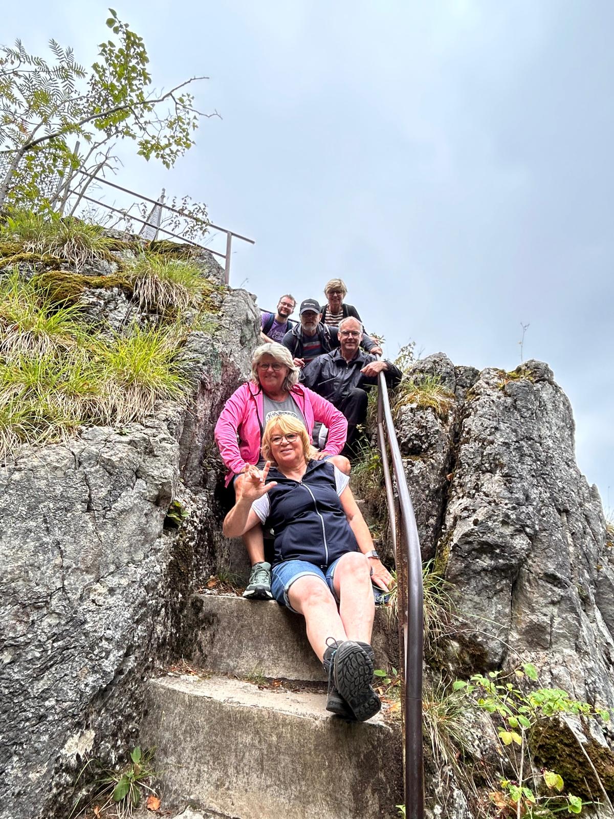 Gelegenheit für Erinnerungsfotos, bevor wir den steilen Weg vorsichtig wieder